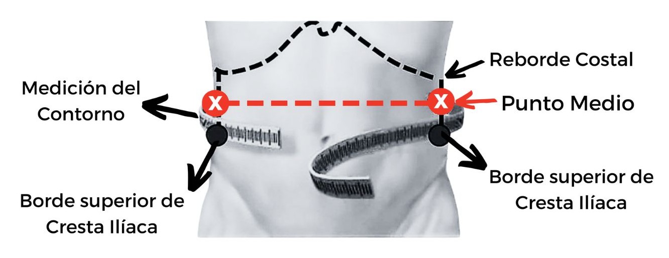 La medición de la circunferencia de abdominal debe ser realizada como se muestra en la imagen.